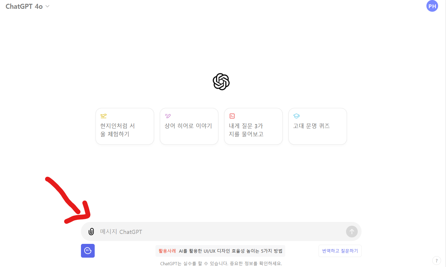 ④ 하단 질문란에 내가 물어보고 싶은 단어를 입력합니다.