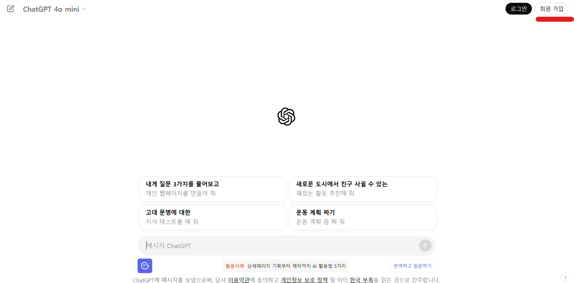 ③ 회원가입을 완료한 후 로그인을 진행합니다. 이후 챗 GPT를 사용할 수 있습니다.