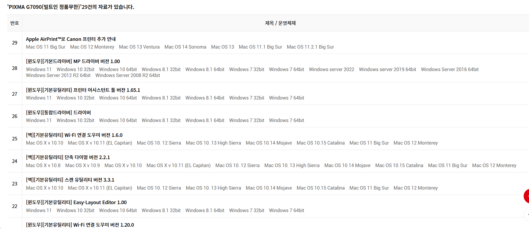 ● 프린터 드라이버 검색 후 가장 최근 드라이버 혹은 자신에 맞는 드라이버 설치 하기