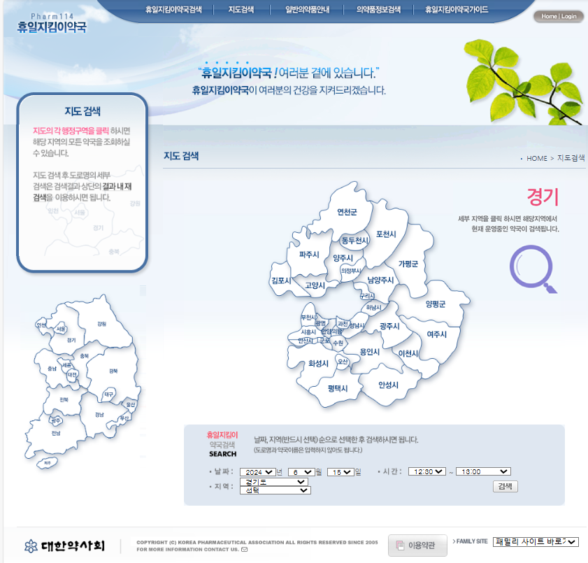 24시•휴일 운영 약국 찾기